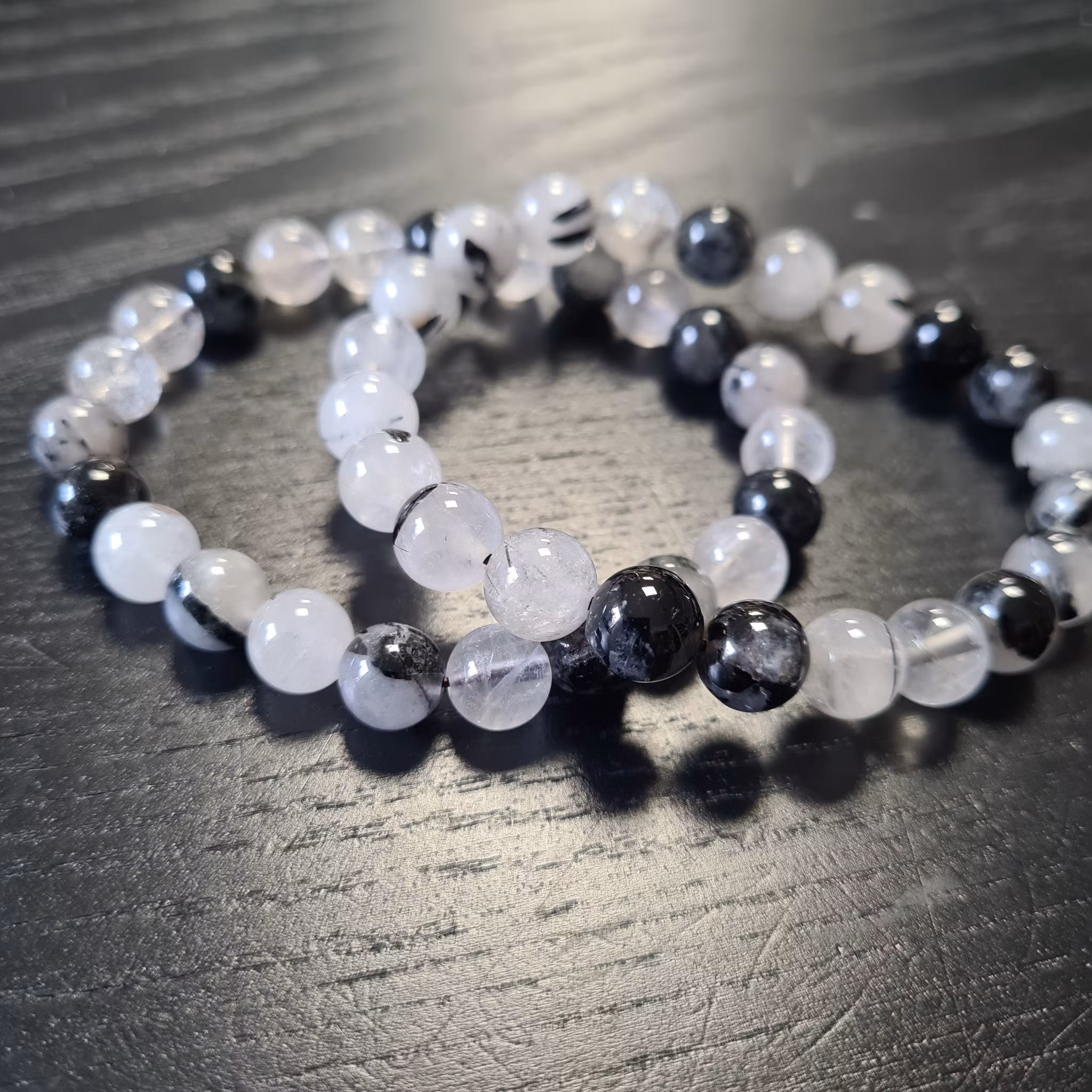 Armband i Rutilkvarts, (turmalin) 8 mm pärlor